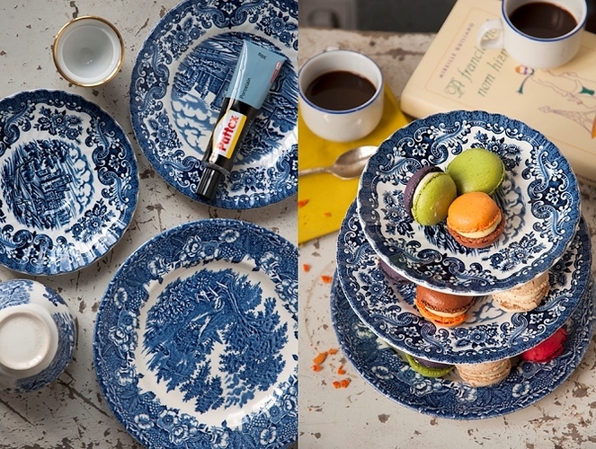 Először is szükséged lesz különböző átmérőjű tányérokra - annyira, ahány emeletesre tervezed a tartót. Ha te is hasonló stílusút szeretnél - mint amit én készítettem - mindenképp régi darabokat válassz! Ha nincs neked otthon, nézz ki az Ecseri piacra, vagy az egyik kedvenc kis boltomba a Fő utcában.